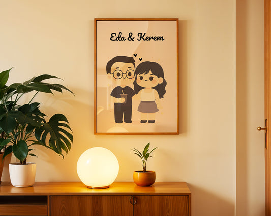 Kişiye Özel Karikatür Çift Posteri – Baskılı ve Çerçeveli Duvar Dekoru